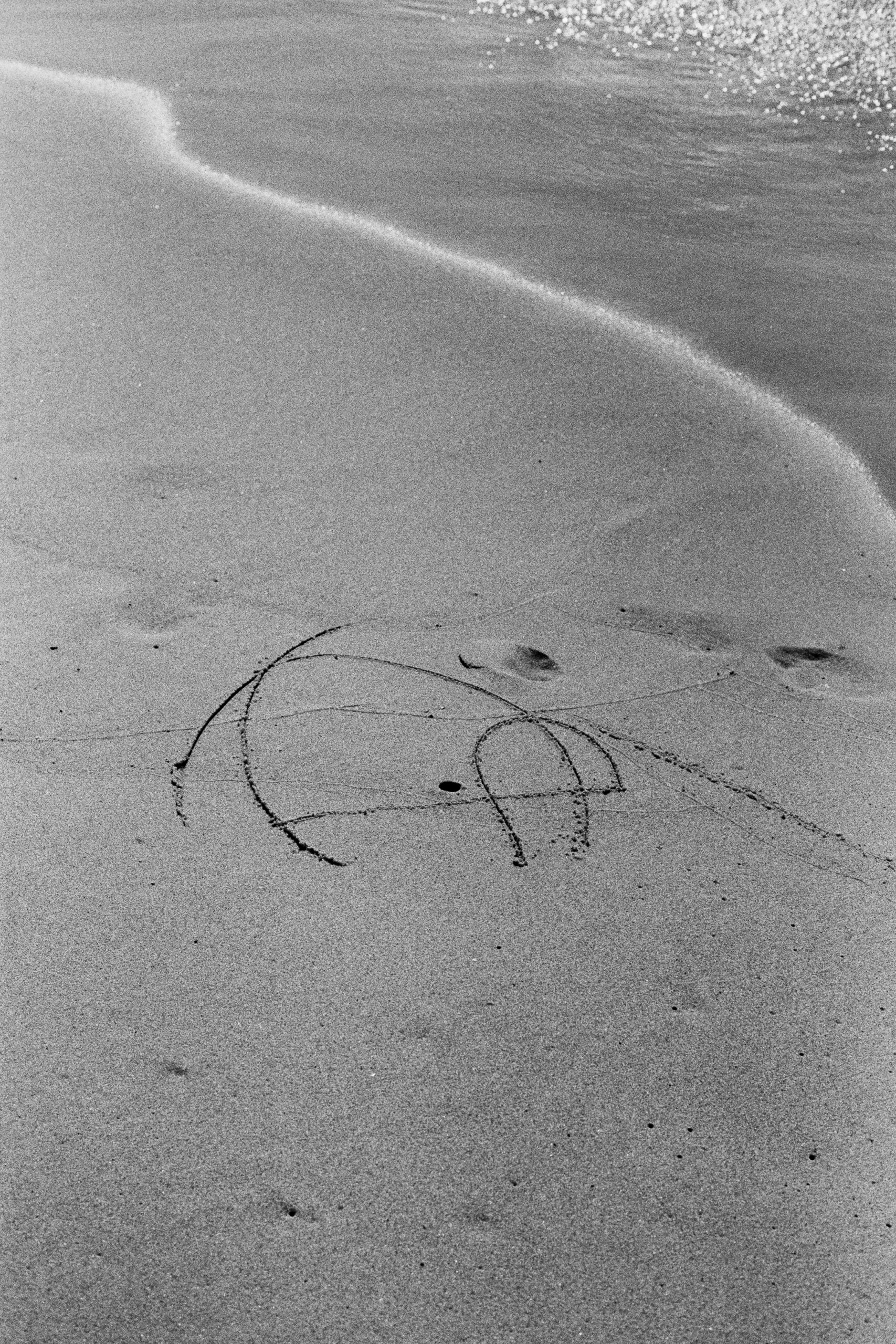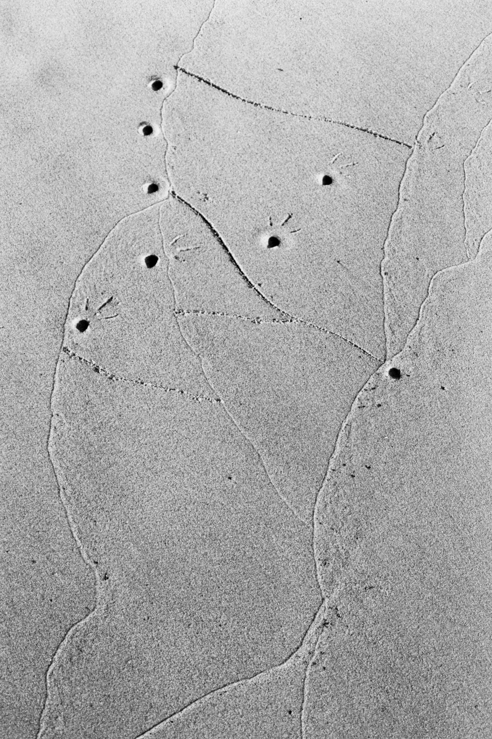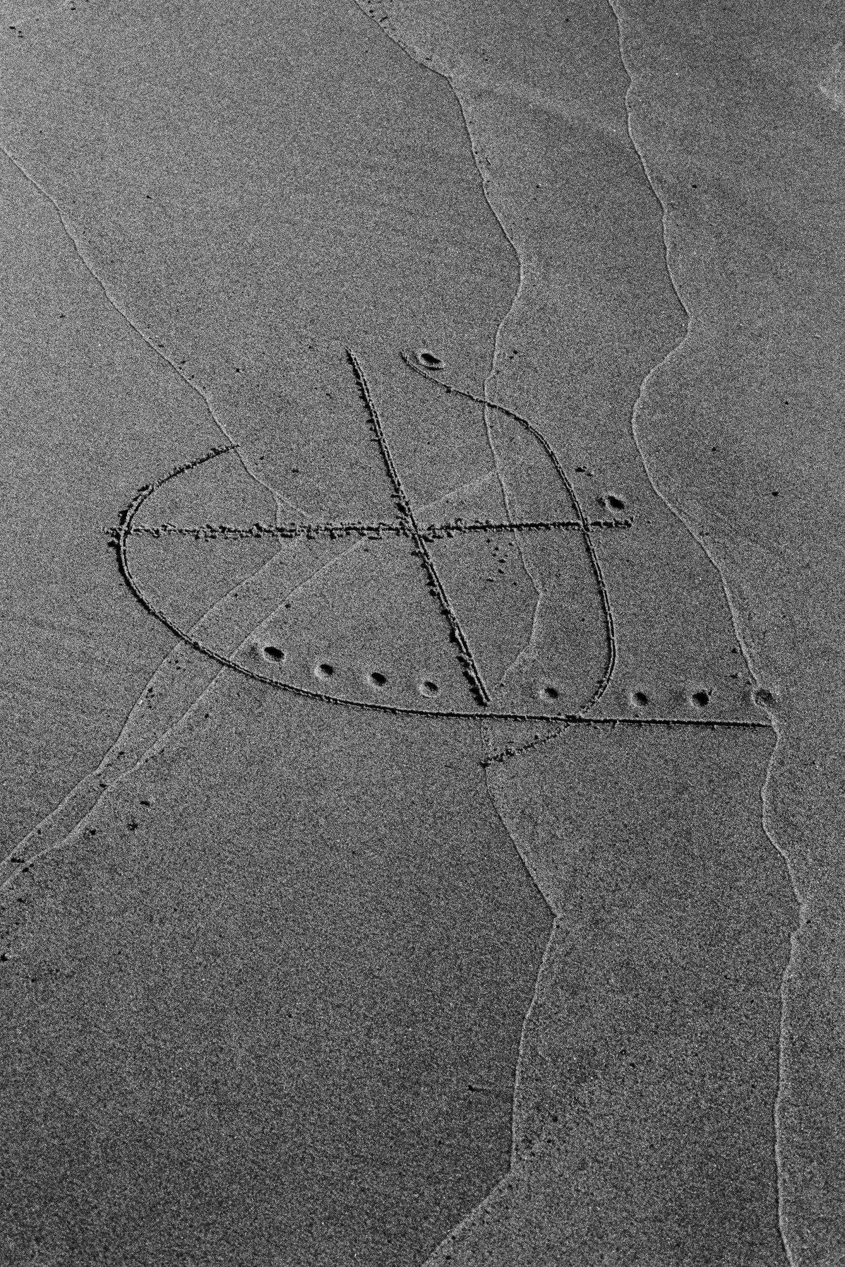 Chateau International is pleased to present the second volume of Ben K. Voss & Midge Wattle’s IMPRINTS series, accompanied by a new text from the eminent poet and essayist, Ann Lauterbach. Beginning in the winter of 2018 during a residency in Aspen, Colorado, and continuing in the following summers along the shores of Lake Michigan, these silver gelatin photographs made by Wattles depict drawings in sand made by Voss.